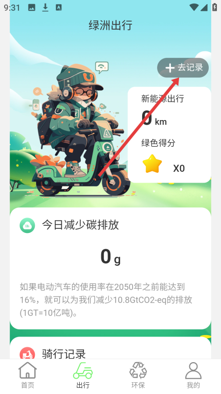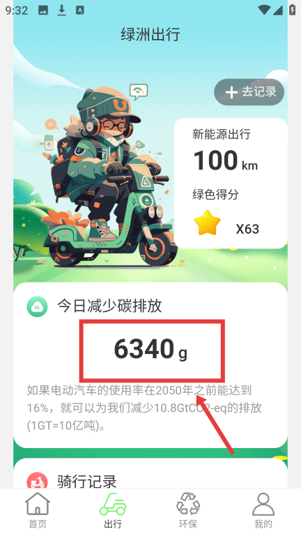 4、记录完成后查看【今日减少碳排放】,即可了解减排成果信息。