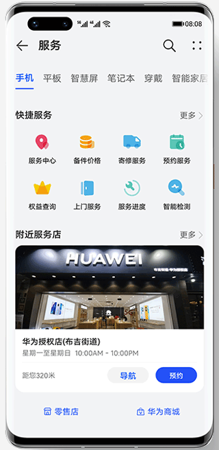 轻松查找附近门店、在线预约、智能检测;全方位服务尽在“服务”