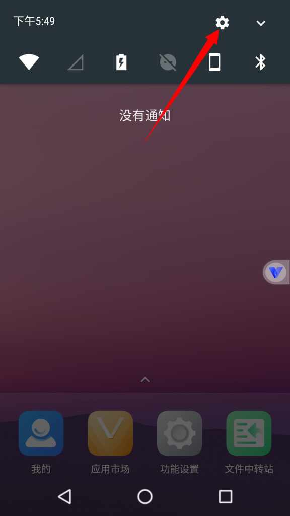1、虚拟机顶部划出状态栏,长按设置按钮。