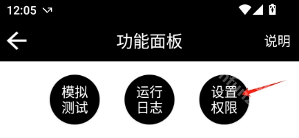 进入App首页后,依次点击功能面板、设置权限,最后进入系统权限设置页面。