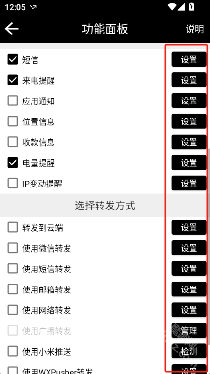 进到功能面板后,根据自己的需求进行相应功能的设置