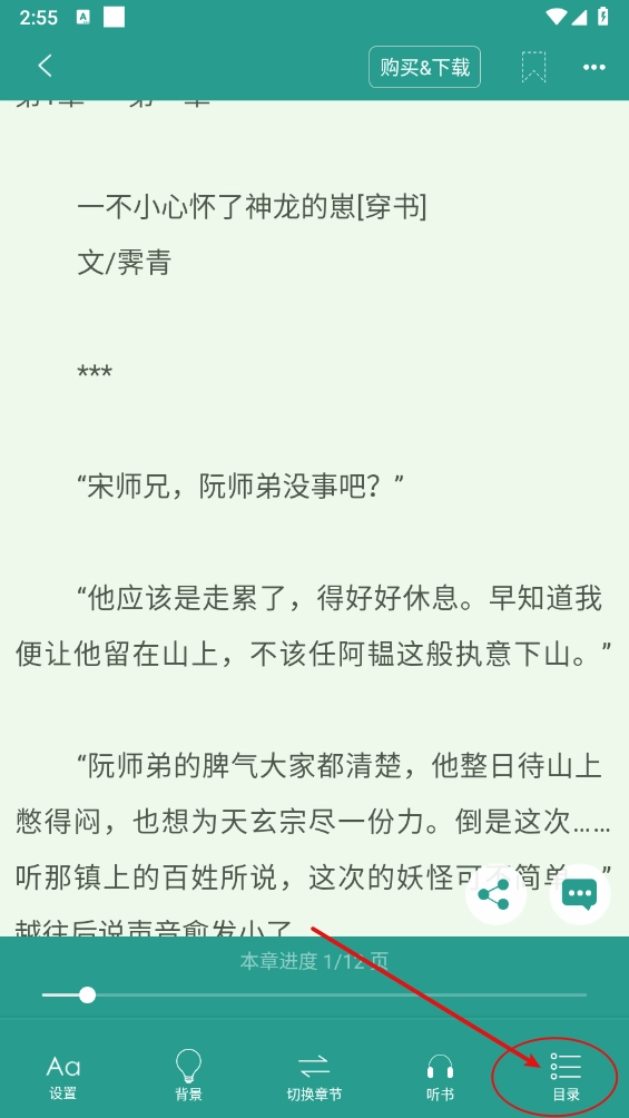 点击屏幕中间位置呼出菜单,之后就能看到右下角的“目录”选项了。