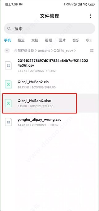 请把这个平台的账单文件存到手机的SD卡里面,现在仅支持Excel或者CSV格式的文件。