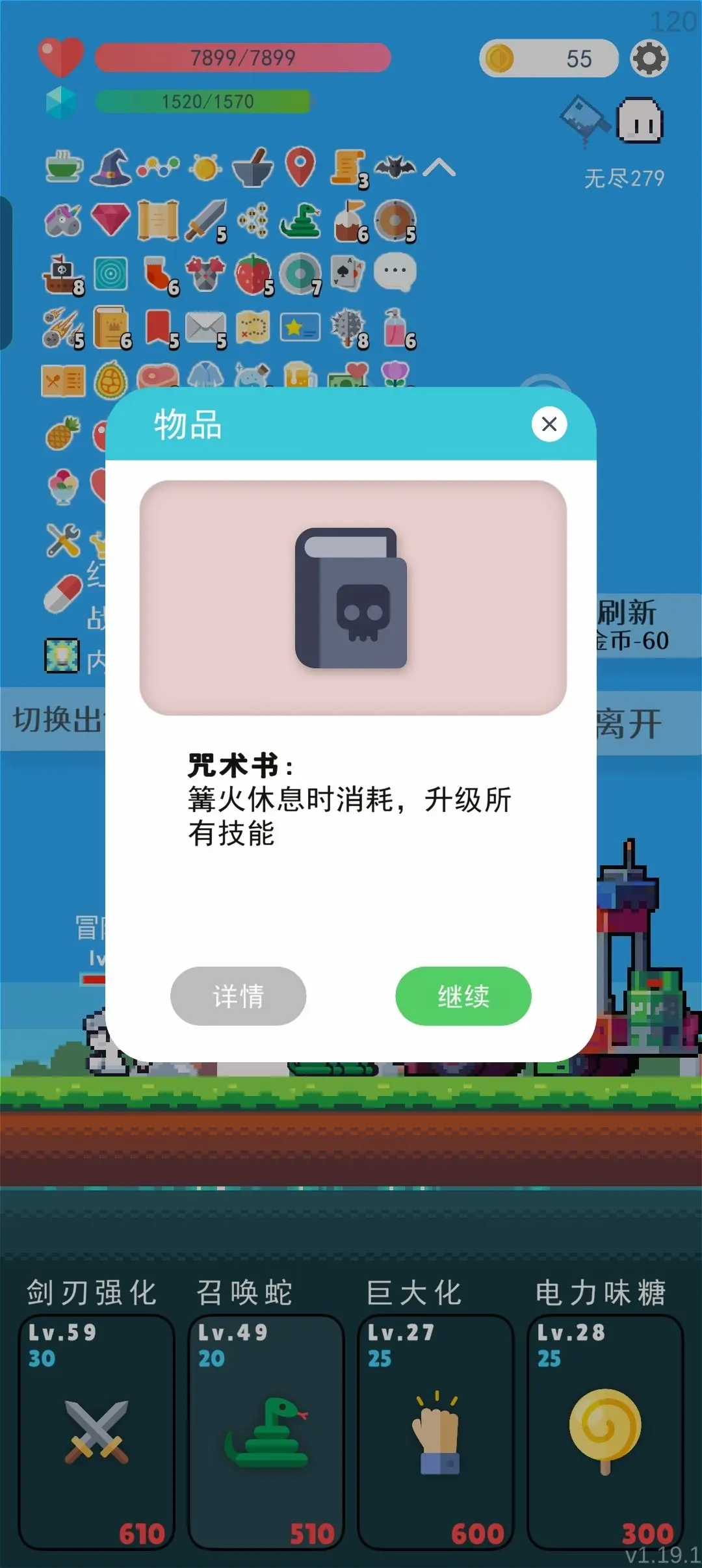 提升技能或血量,没有需要的在100关前选择跳过