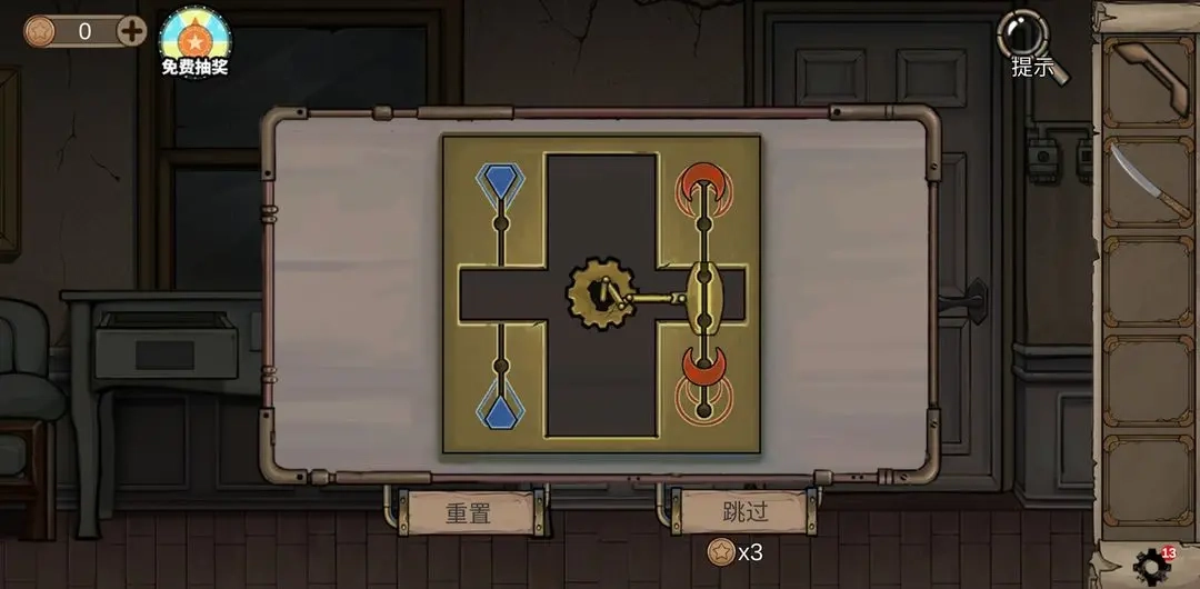 各房间要把能收集的物资都收集起来,5号房可以拧出两个编号为1和2的齿轮,用刀打开箱子,还能从地球仪那里拿到二极管;之后去4号房的地毯处尝试密码,密码每次都会变化,但一次只需要试四个数字,难度不算大。