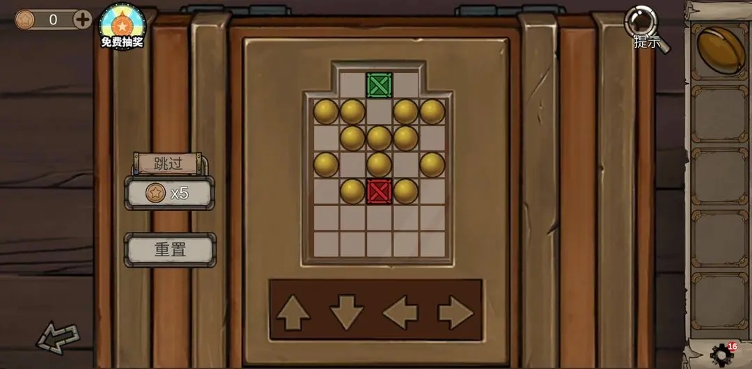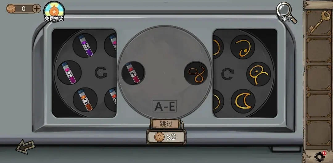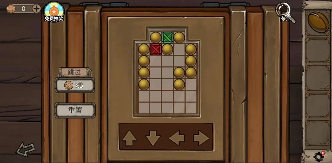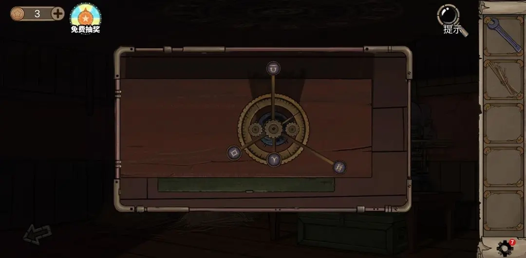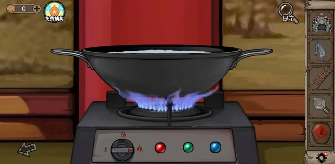 3在3号房间牛头所在的位置找到刀,接着去2号房间用这把刀获取羊皮来缝制鼓;然后用爱心形状的钥匙打开地窖,拿到里面的水管。用酒曲酿酒的步骤很简单,只要根据提示操作:先拉动左侧的绳子,再操作红、绿、蓝三个按键,等指针移动到红色条纹区域时按下按键,就能得到装满酒的酒缸了。
