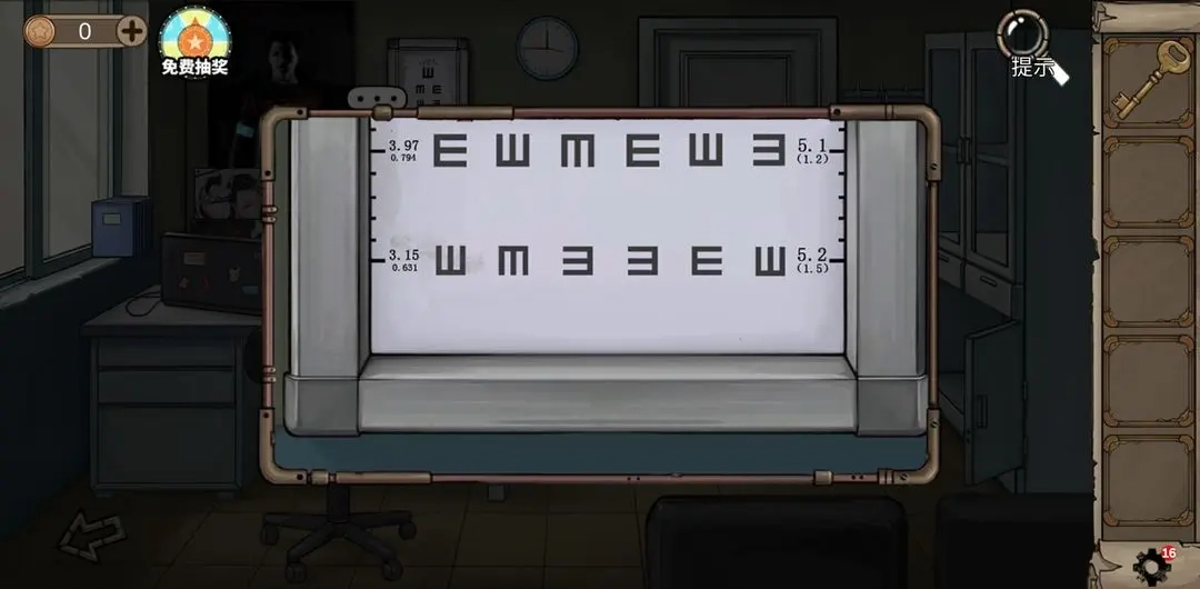 椅子上放着清洁布,是用来擦拭视力表的。最后一排的方向对应的就是电脑小键盘的密码,密码是824468,要记得先解锁小键盘哦。解开电脑后,看到的9324就是进门密码,很多人没看出来这个密码,是因为需要看白色部分才行。