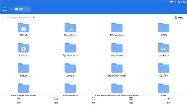 打开快捷导航后依次点击工具与文件分析器,即可查看sdcard的总容量、已用容量和可用容量,同时还能显示各个文件夹或文件的大小、占比,以及它们包含的文件或文件夹数量;长按对应项目可直接执行删除操作。点击地址栏能够切换至外置卡。点击目录分析功能,则会展示当前路径下图片、音频、视频、文档、安装包及其他类型文件各自所占的容量情况。