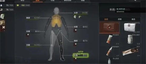 身体机能在此时会受到影响。“头部”与“胸部”属于一旦受损就意味着撤离失败的关键部位,因此需尽快处理伤势。当手臂出现损坏情况时,会使我们的开镜速度变慢、持枪稳定性下降,物资搜索的效率也会大幅降低。腿部若有损伤,会严重减慢移动速度,让人无法奔跑。而腹部受伤的话,会导致无法趴下,同时还会加快水量和能量的流失速度。