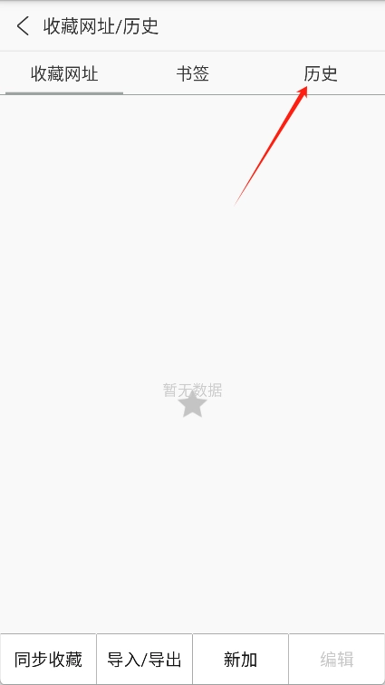 在“收藏网址/历史”页面中点击“历史”选项卡。