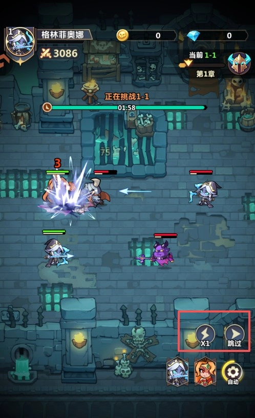 在游戏战斗时,你能滑动屏幕来调整全队的站位,这可以用来规避敌人的终极技能;另外,点击屏幕右下角的图标还能加速战斗进程,甚至直接跳过战斗环节。