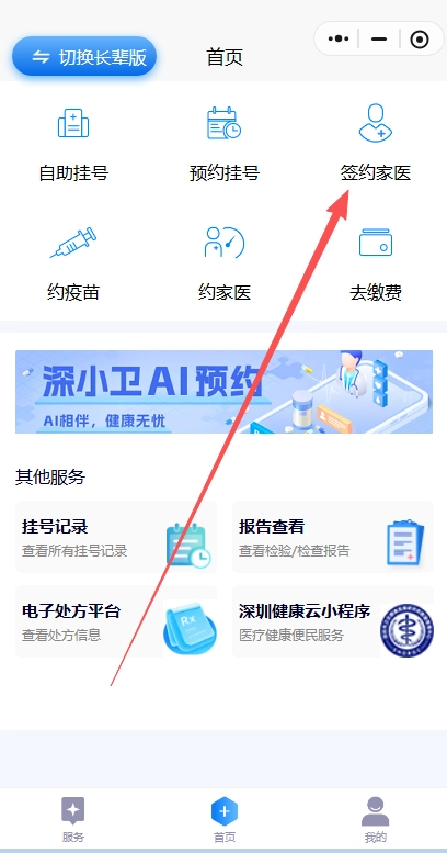 在打开小程序首页,点击“签约家医”。