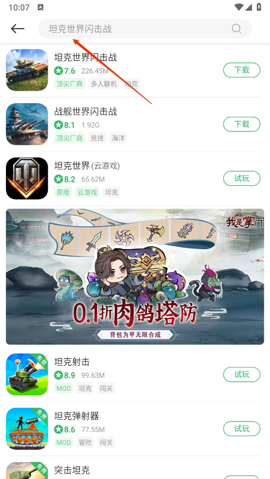 你也可以点击顶部的搜索框,一键查找自己喜欢的游戏,就像图中展示的那样。