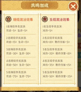 ①铜币所学的课程可以为学员提供多种基础属性的增益效果,像降低受到的伤害、提升生命力与攻击力等。