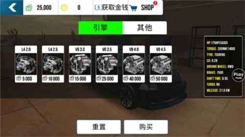 在升级界面,可对汽车的所有配件进行个性化升级。
