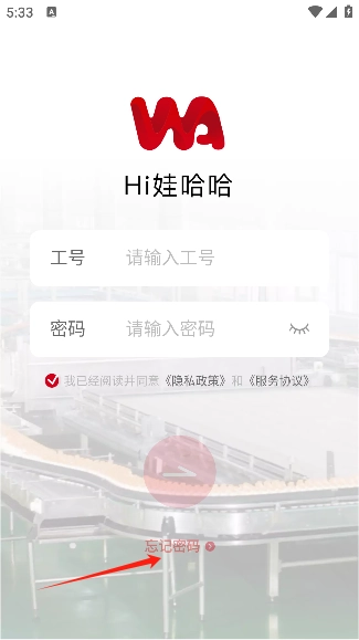 打开hi娃哈哈在,在登录界面点击忘记密码