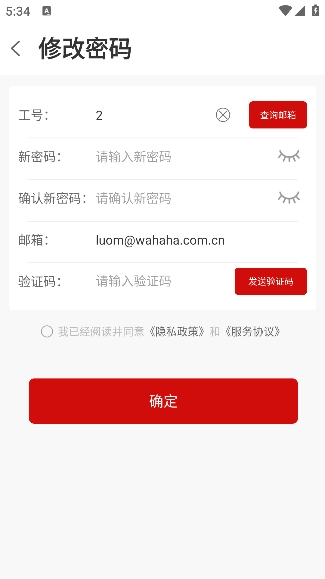 然后输入工号、新密码、邮箱地址等信息,点击确定按钮就能完成密码重置操作。