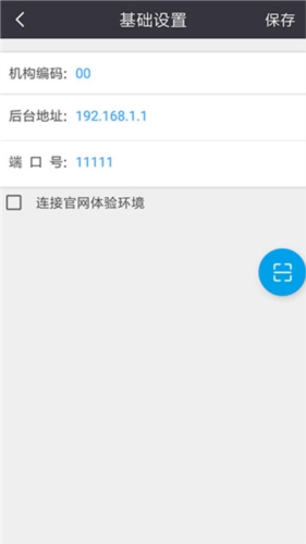 点击基础设置,依次输入配置机构编码、后台地址和端口号就可以了。