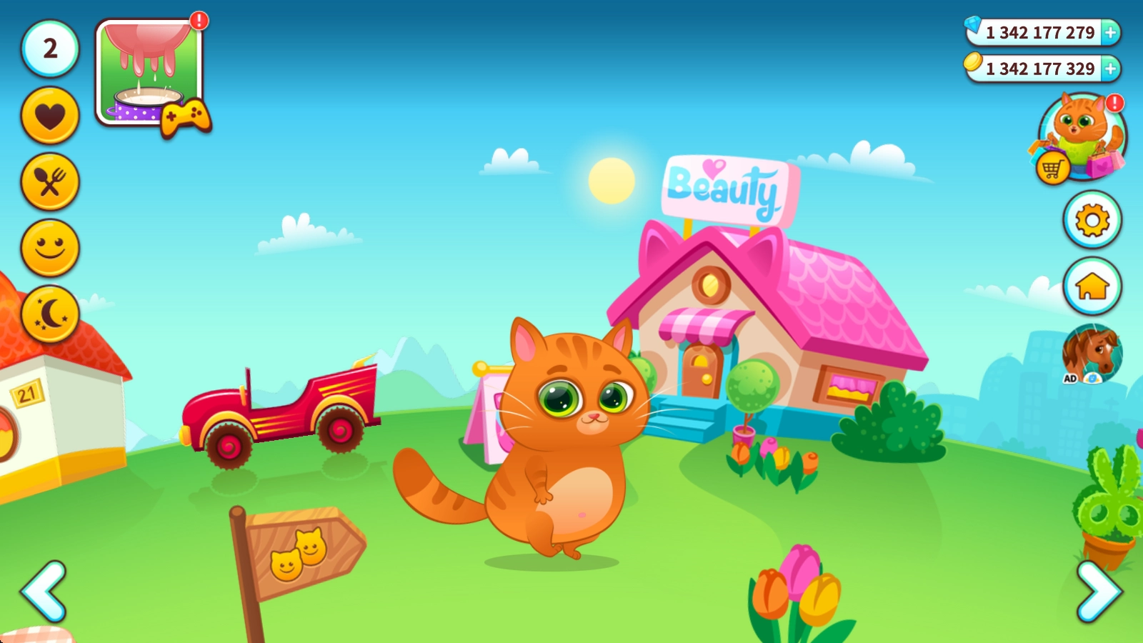 我的虚拟宠物猫(Bubbu),其英文全称是My Virtual Pet Cat,这是一款能让你体验云养猫咪乐趣的养成类游戏。在游戏里,你会领养到一只既可爱又有趣的虚拟宠物猫,它那憨憨的卡通形象实在是萌态十足。你可以像对待真实猫咪一样照顾它:陪它玩耍嬉戏,帮它洗澡清洁身体,喂它吃美味的食物,把它养得白白胖胖的!除此之外,你还能通过玩小游戏来赚取金币,然后用这些金币给猫咪买漂亮的衣服,把它打扮得更加可爱、更加漂亮!