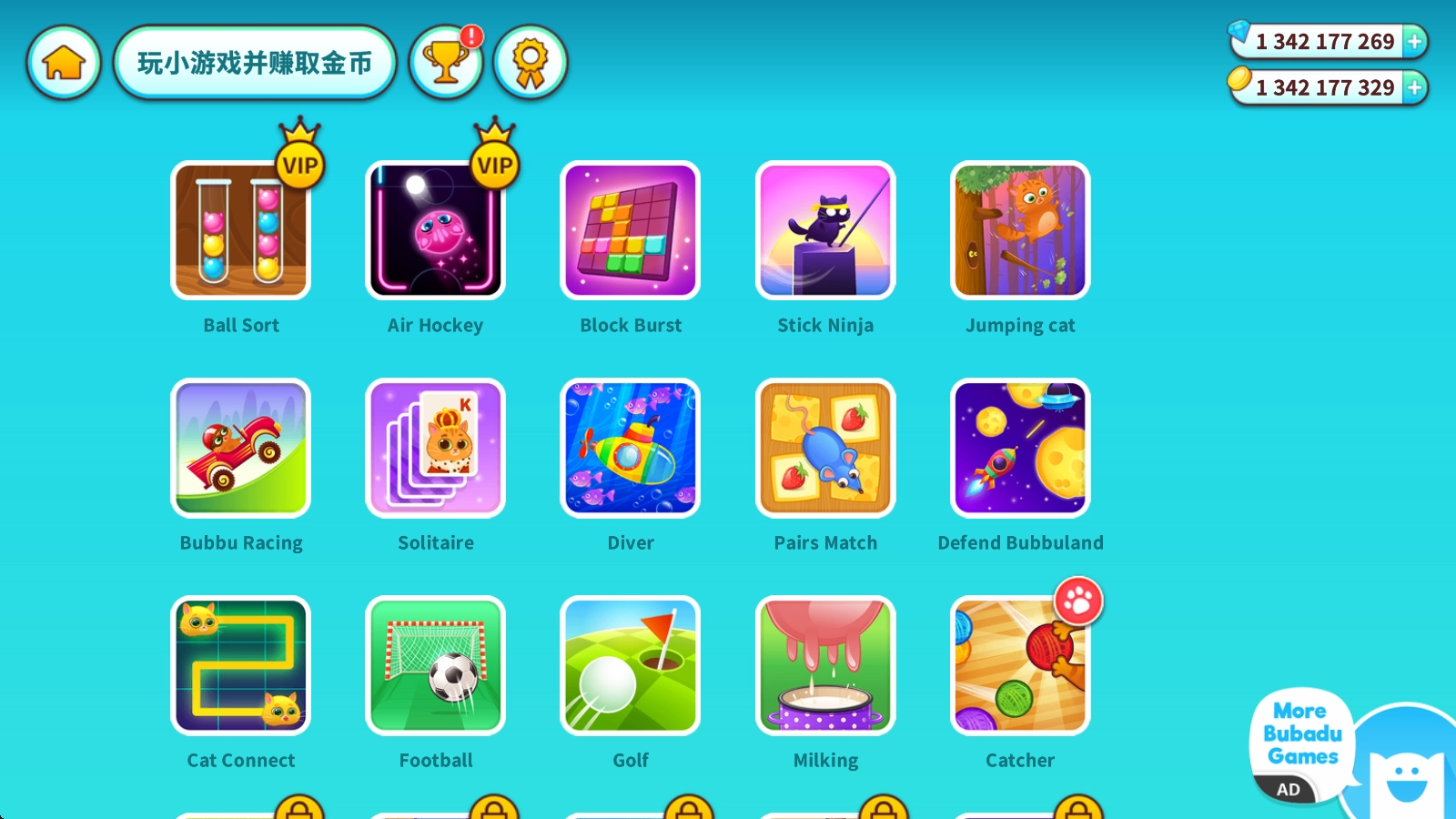 左上角中间区域还设有丰富多样的小游戏供你体验,通过这些游戏你可以赚取金币,比如其中的踢足球游戏。