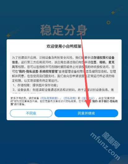 打开小白鸭框架阅读协议,点击同意并继续