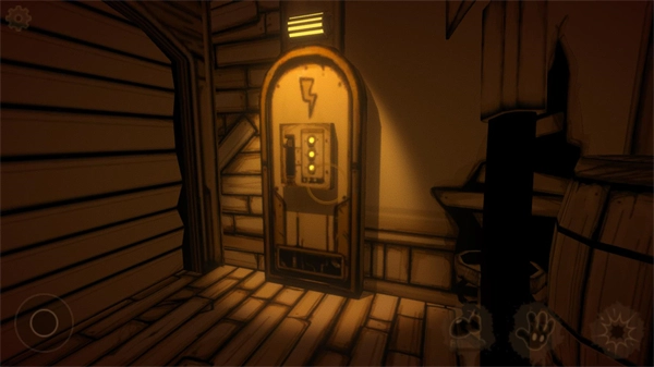 进入第二章后,先把旁边的斧子拿起来,接着打开那扇被木板封住的门,然后一直往前走,直到出现目标提示——需要找到三个开关。这三个开关里,有两个在刚出门下楼梯的房间中,剩下的一个则位于油墨走廊尽头的左侧,被一堆罐头遮挡着。和这三个开关依次互动后,大门就会开启。