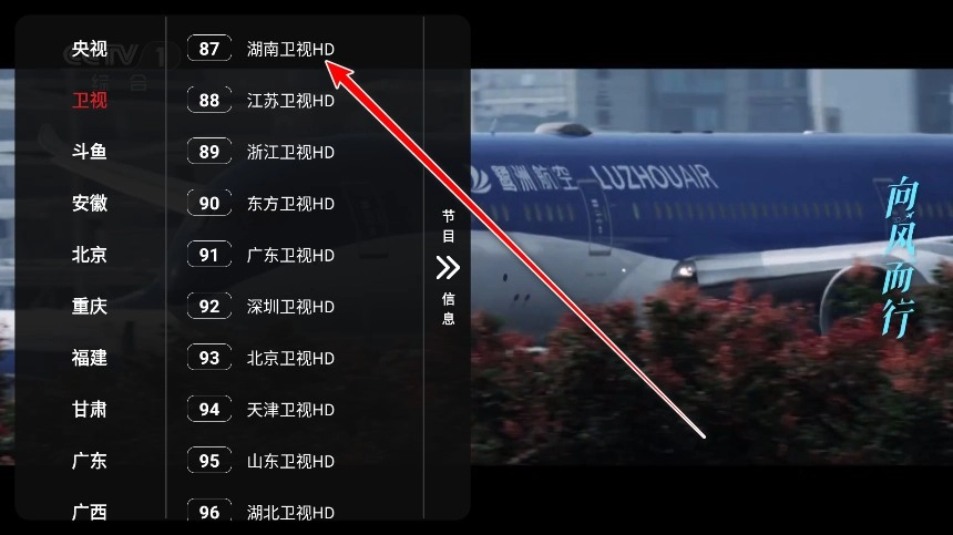 在卫视分类下选择具体的卫视频道,即可完成切换