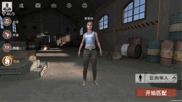 进游戏后的页面功能分类依旧十分清晰,右下角设有游戏匹配入口,左侧则排列着“仓库”“军备”(军备板块可供玩家查看游戏内各类枪支及适配的配件)、商场、活动等功能选项。