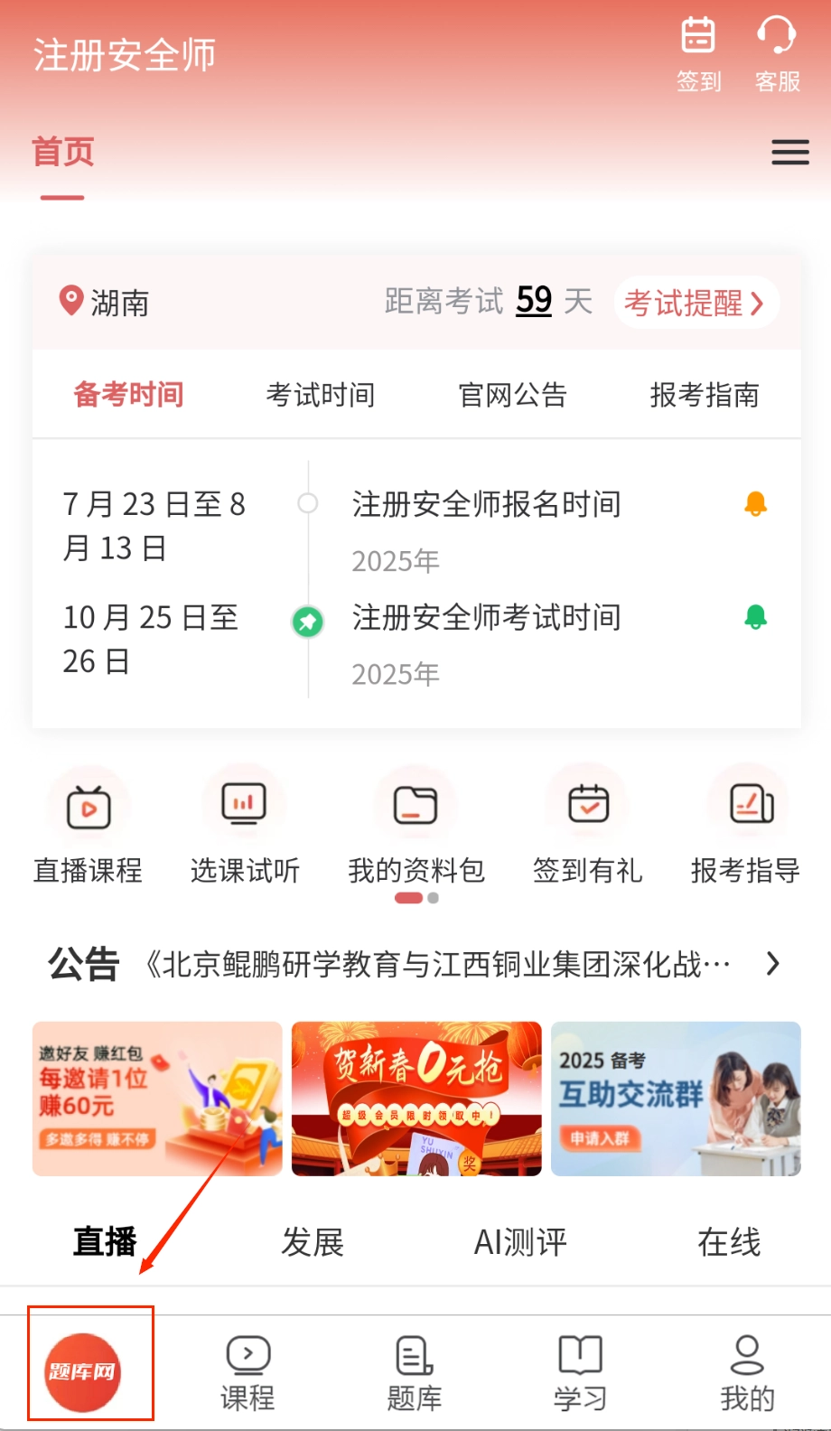 界面采用简约风格设计,题库练习、视频课程、学习计划等核心功能分区清晰,操作流程直观简单,便于用户快速上手使用。