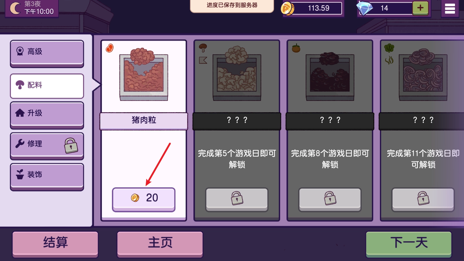 随着天数的增加,还会解锁更多的食材。