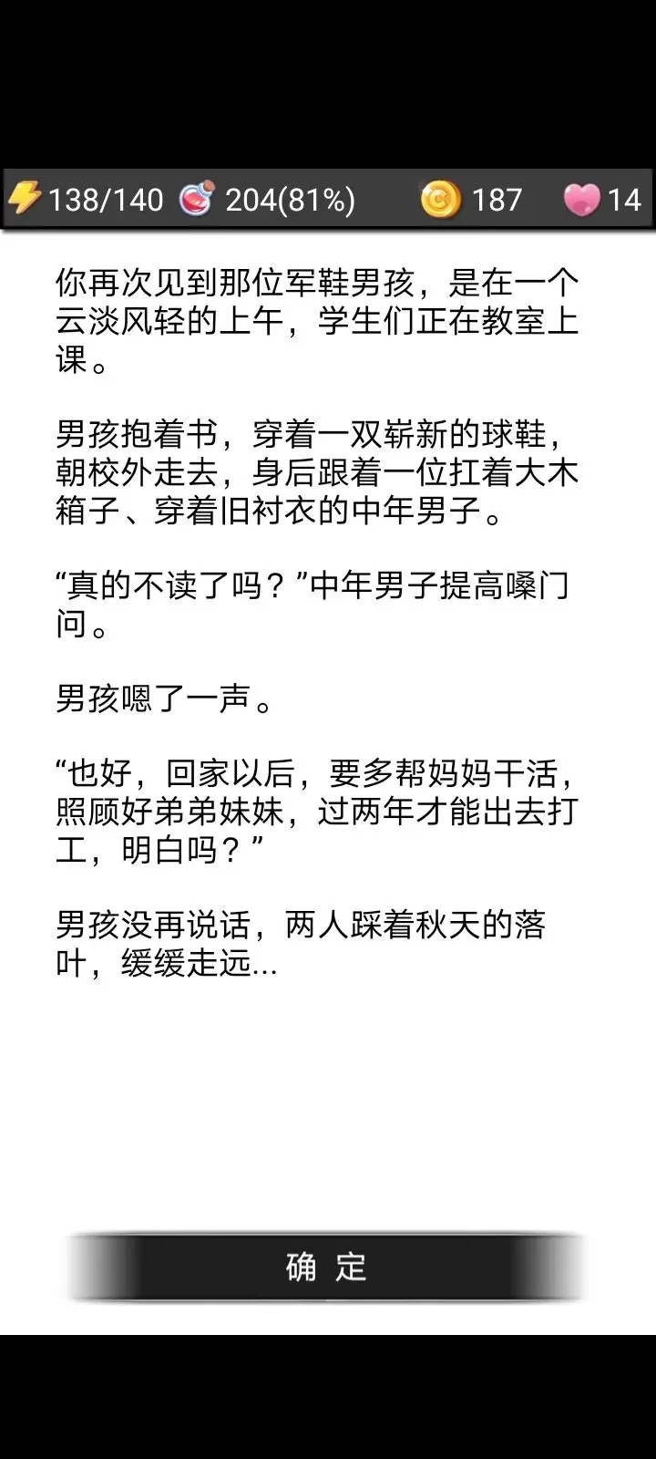 在初次碰到军鞋男孩之前,你的背包里是否装有木器,会触发两种不同的场景,并且这两个场景各自对应两种结局,总共加起来就是四个结局。