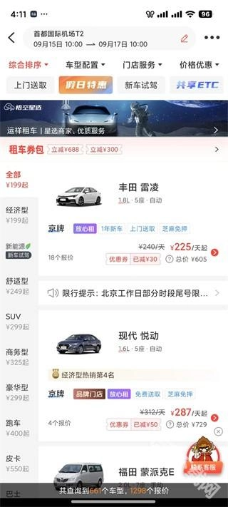 新用户能享受1388元的租车套餐,只需花几十元就能租到心仪的车辆。
