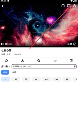 打开你想要观看的电视剧,点击右上角投屏