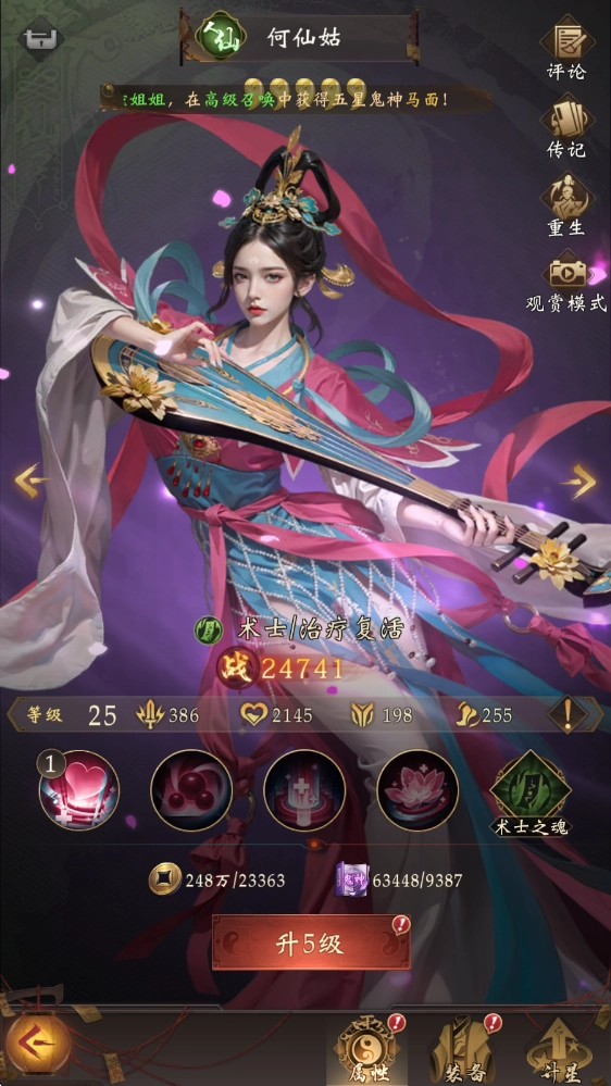 人仙物理输出阵容:哪吒、何仙姑、嫦娥仙子、张道陵、王重阳