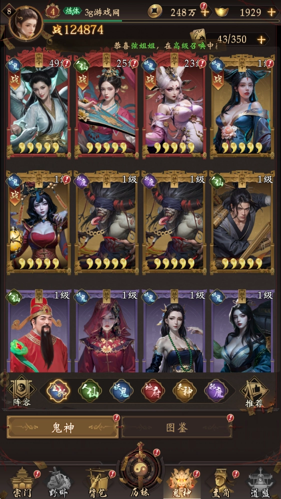招募到新伙伴后,进入鬼神界面,就能在这里查看自己的伙伴了。