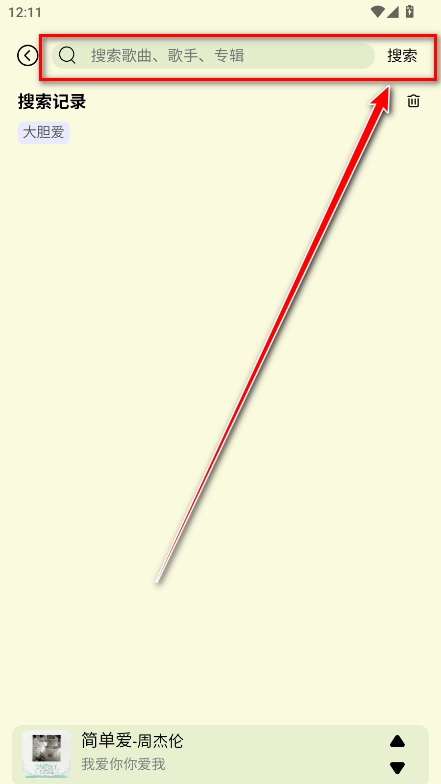 在搜索框中输入歌曲、歌手、专辑名称等内容,接着点击搜索按钮。