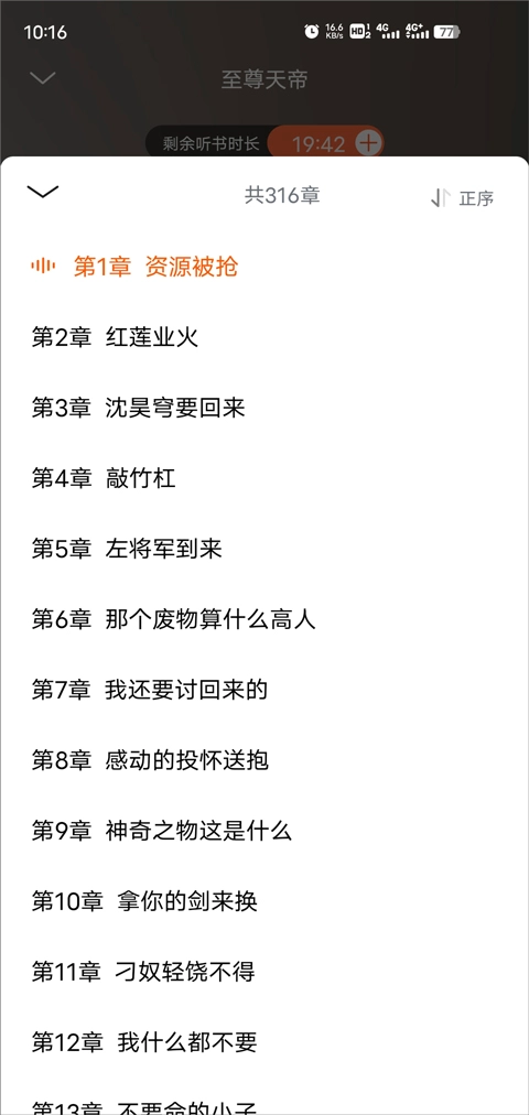 当然,用户也能点击【目录】,挑选章节来听书。