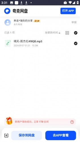 最后找到“歌曲”选项,点击后会跳转到百度网盘页面,接着就能免费获取这首歌了。
