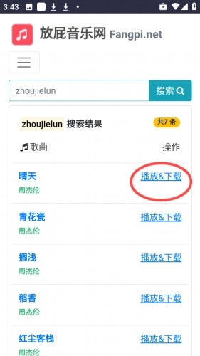 这里以周杰伦的“晴天”为例,支持播放或者。
