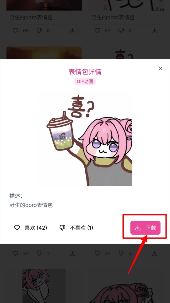 然后一键点击进入表情包详情页。