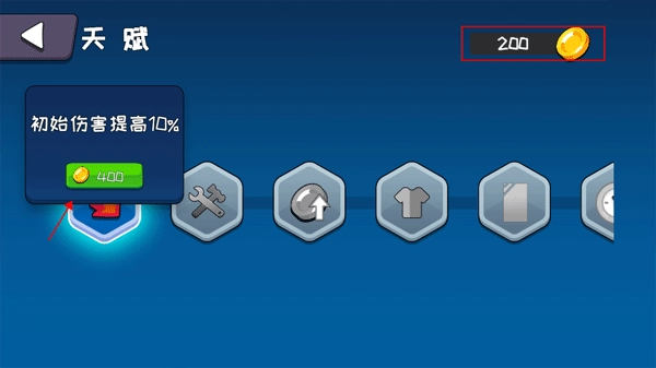 现在要介绍的游戏玩法,就是游戏主界面左下方的三个功能按钮:强化、皮肤和芯片。其中,强化功能能够使机器人天赋的初始伤害值提升10%,不过这需要右上角的金币数量满足购买所需的数值才行。