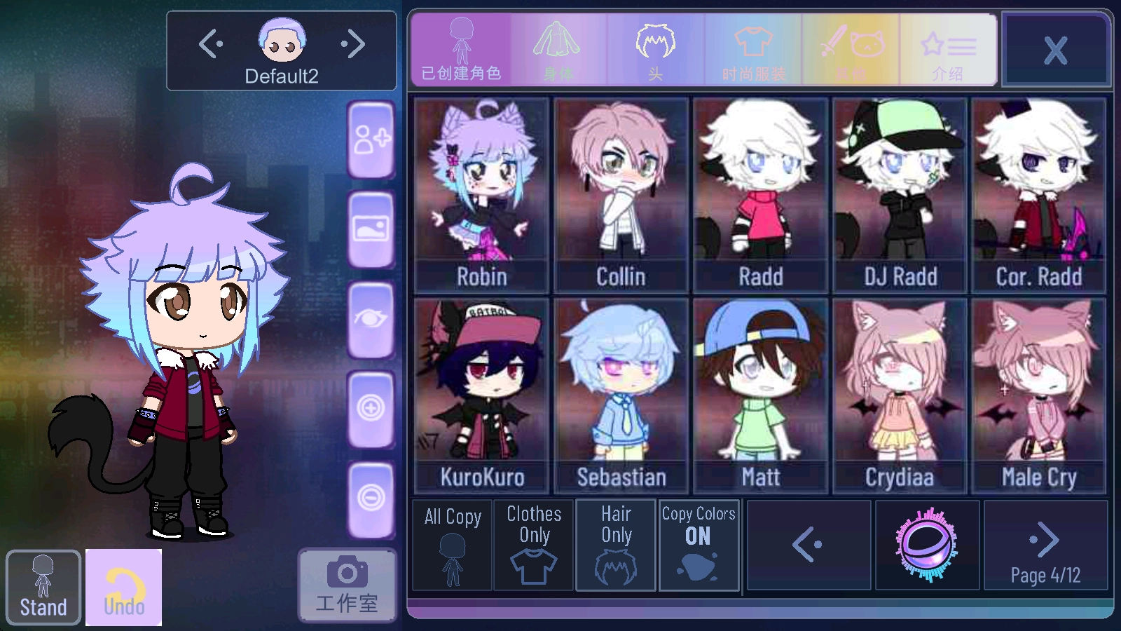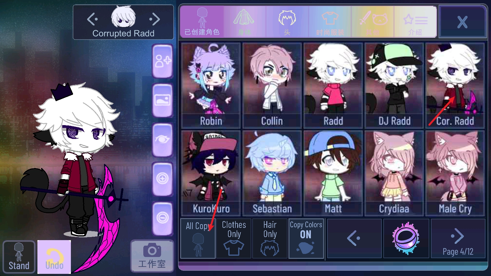 进入后,在右侧能看到很多已创建好的角色,选中左下角的ALL Copy,再点击角色就能直接复制过来。