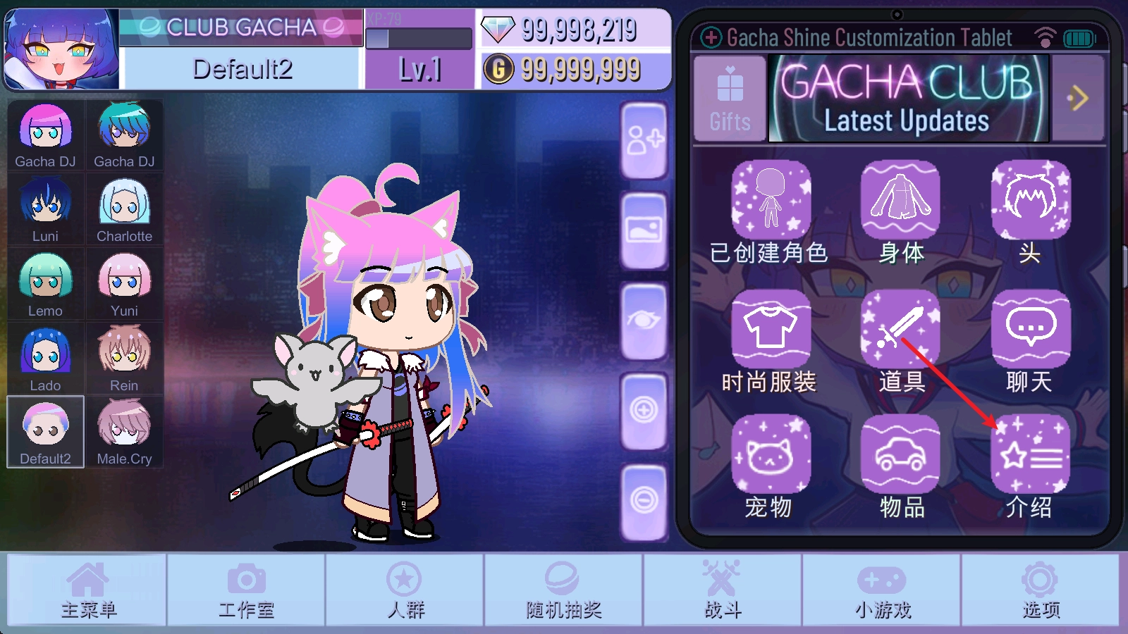 当我们获取到其他玩家分享的人设代码后,得通过正确操作才能使用呢。首先,我们要点击主菜单下方的“介绍”选项。