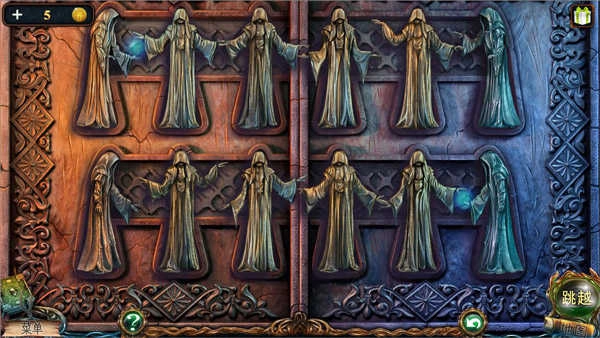 用钥匙开启6处的箱子,取得第二个天使雕塑;把两个天使像放进8处的凹槽,解锁放大镜工具。