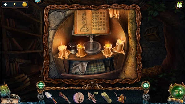 在小屋里,先从1号柜子取出未点燃的蜡烛;接着阅读蜡烛旁边的古籍,知晓关于美人鱼和生命之湖的传说;之后再次点击那本书,会发现藏着的提示“此处有密码”;最后打开抽屉,从布料下面拿到油壶。