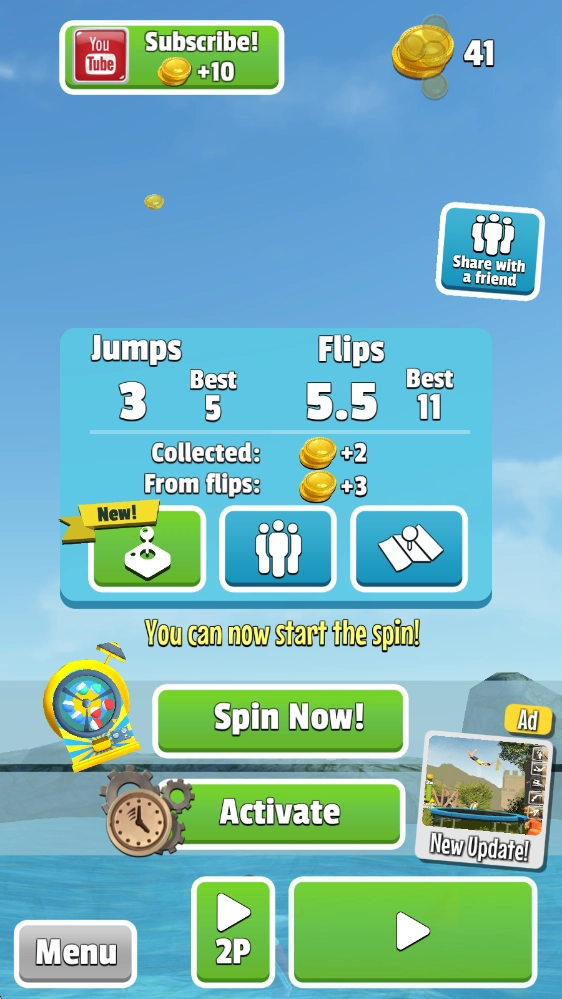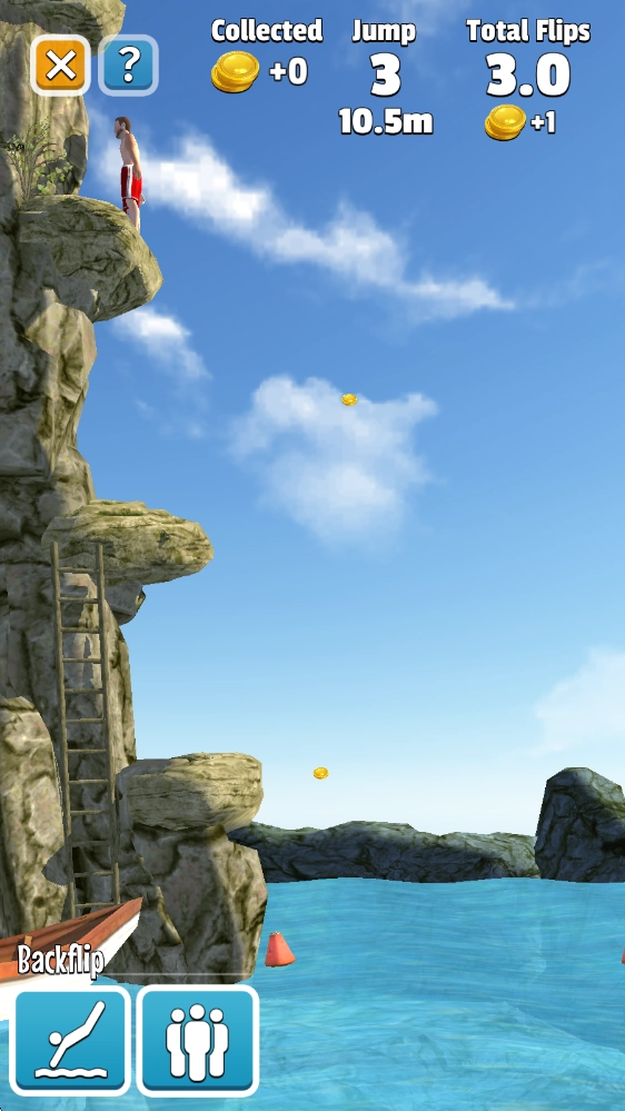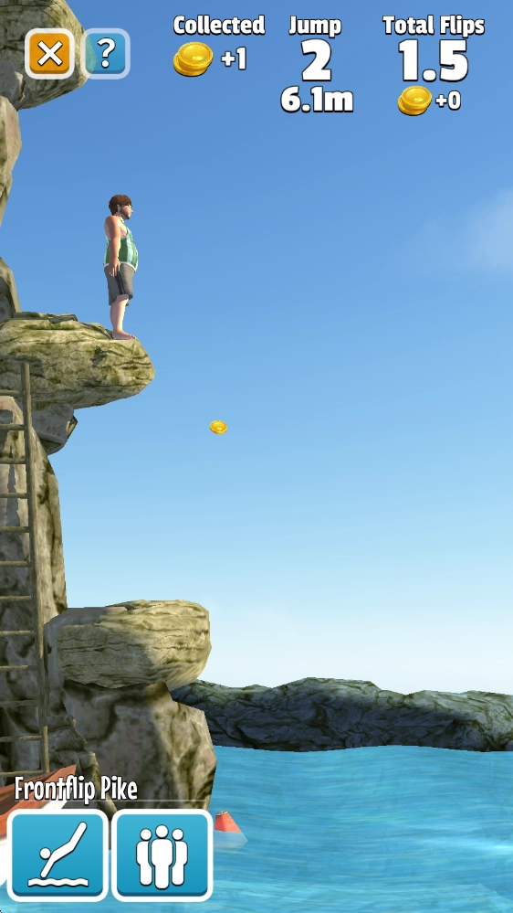 翻转跳水(Flip Diving)是一款以跳水为题材的休闲体育游戏。在游戏里,我们能置身于不同环境的跳台场景,感受身为跳水运动员的乐趣!玩家要操控自己的运动员完成跳水动作,在空中展现各种高难度姿态,再以完美的姿势落水,以此获取更高的分数!而且随着挑战的推进,跳水高度会不断提升,这更考验你对平衡的把控能力以及对落水时机的判断!另外,我们还可以解锁更多高难度的跳水动作,锻炼运动员的身体素质,一步步成长为最出色的跳水运动员!