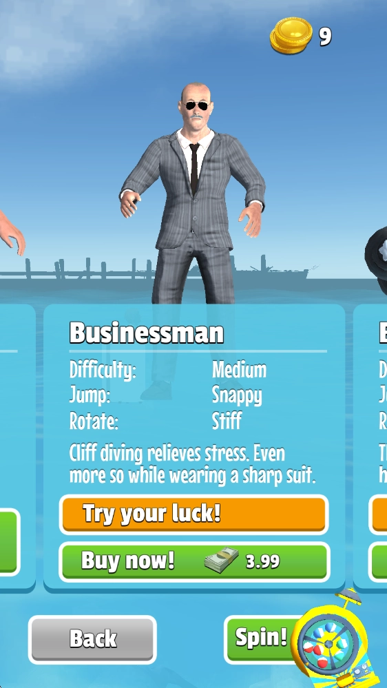 我们可以通过持续跳水来积攒金币,花费40金币就能参与抽奖,不仅有机会直接抽到角色,还能解锁各类跳水动作。