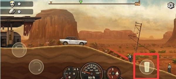 游戏开始后,我们要驾驶战车向前行进,通过撞击的方式对付僵尸,右侧的按键具备刹车功能。