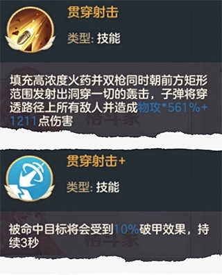 贯穿射击这个技能的核心就体现在“贯穿”二字上,它能够穿透指定路径上的全部敌人,并且施加破甲效果。