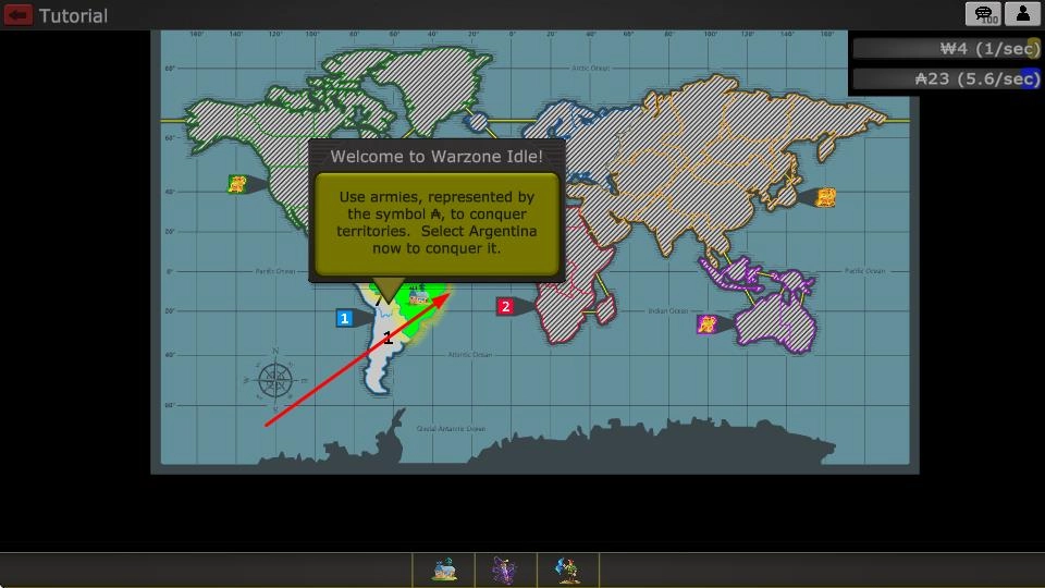 在地图界面,通过滑动屏幕选定目标区域,点击带有旗帜图标的初始国家【1】,确认后即可进入征服准备界面,开启首次扩张挑战。